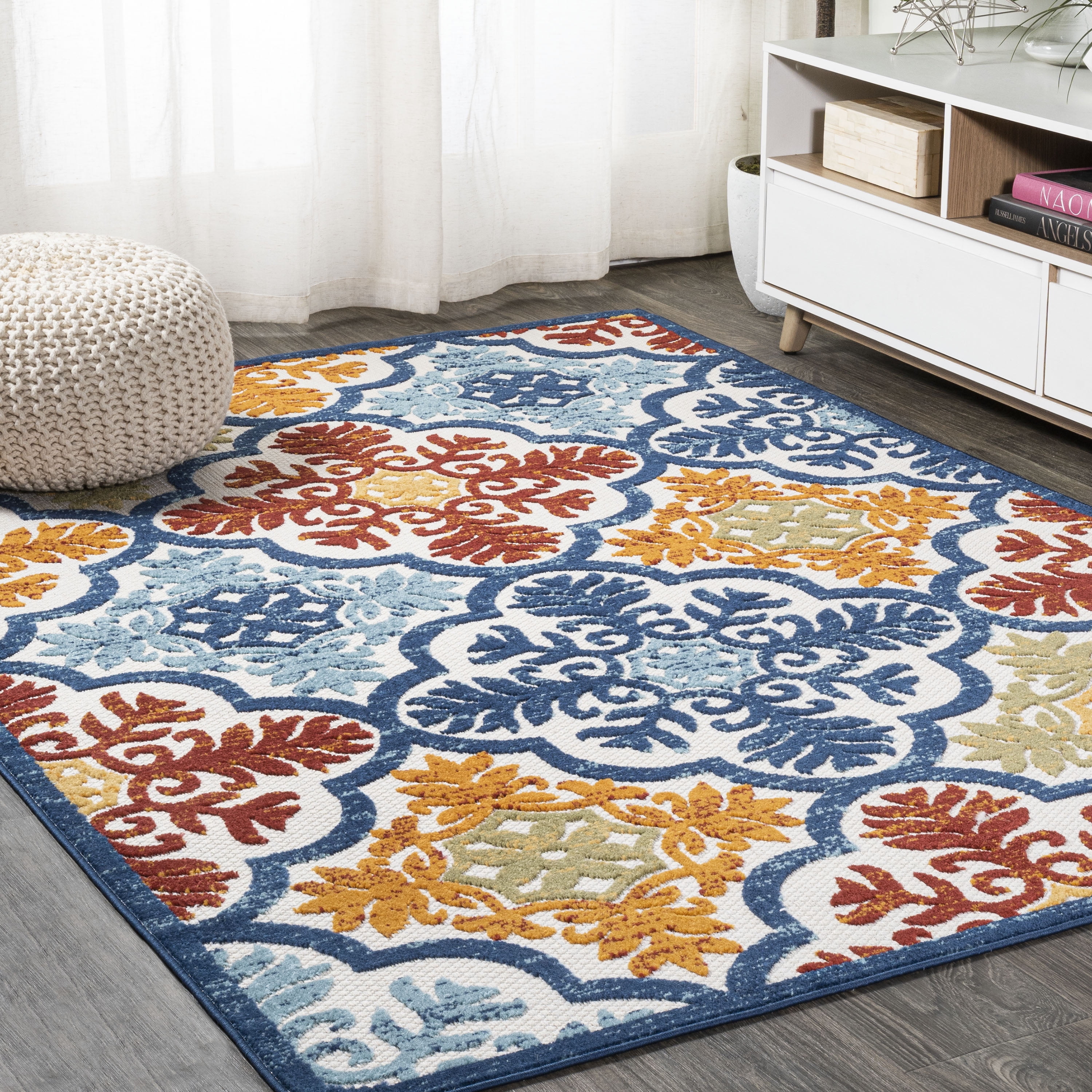 8 X10 Cassis Ornate Ogee Trellis High Low Indoor Outdoor Area Rug Blue Multi Jonathan Y Walmart Com